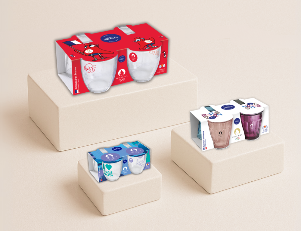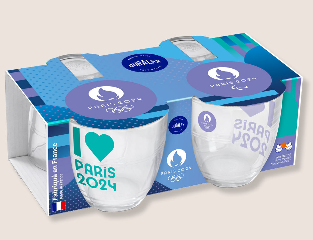 A partir des collections graphiques imaginées par Paris 2024, nous avons conçu 3 packagings comme autant d’écrins pour valoriser les séries limitées des références culte de Duralex : Le Gigogne et Le Picardie.