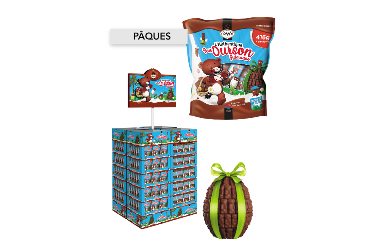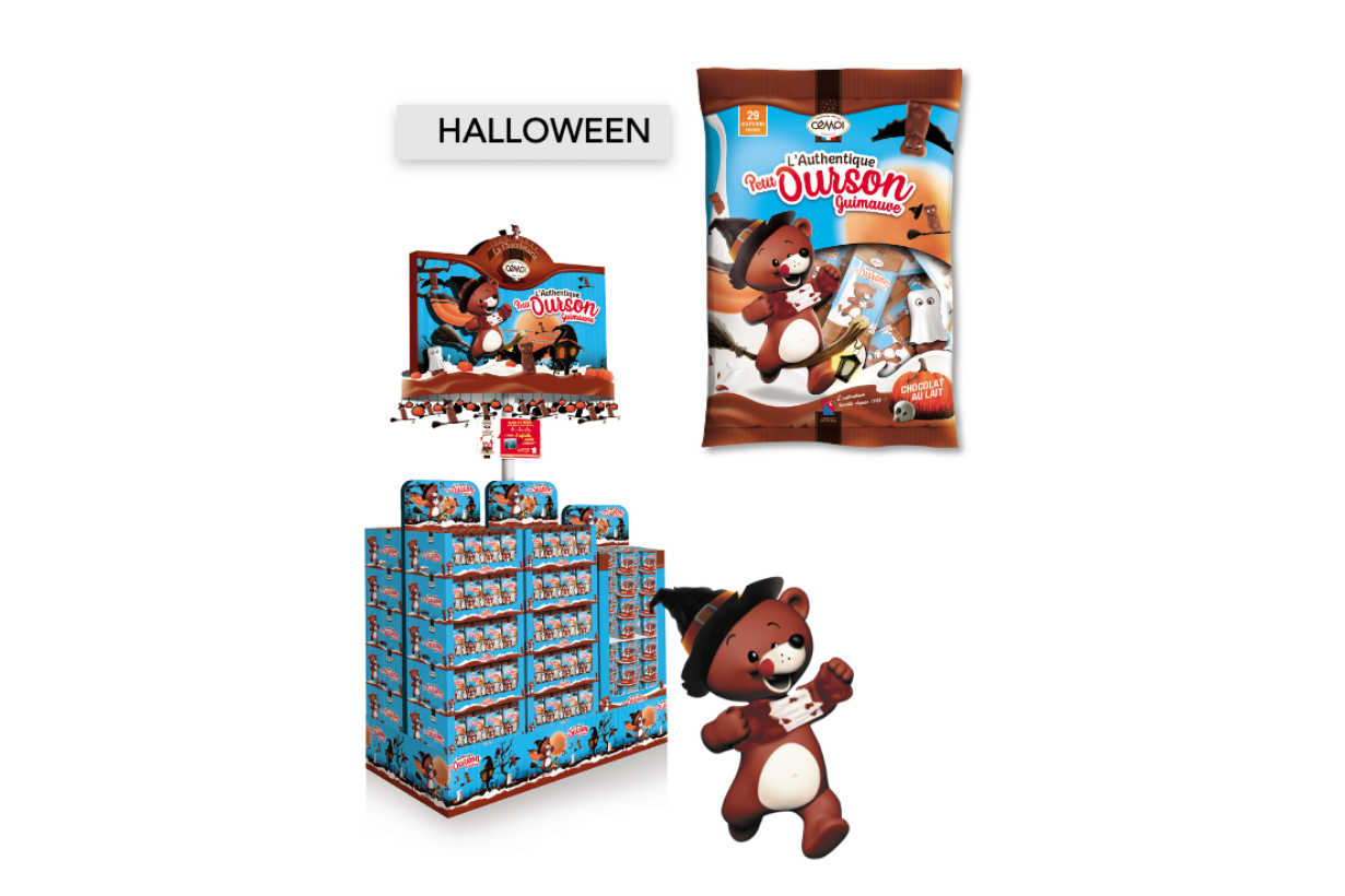 Pour le Petit Ourson Guimauve, marque historique des guimauves chocolatées, nous avons créé un univers instore différenciant, ainsi que des packagings et des primes spécifiques à la saison et capitalisant sur l’attractivité de la mascotte et les codes visuels des références standard.